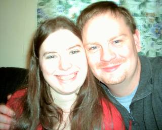 Behind us is our Christmas tree, and our window. Pretty neat how the star was lit up at just the same moment the camera flashed, huh? It took 437 tries to get it that way, but it was more than worth it.