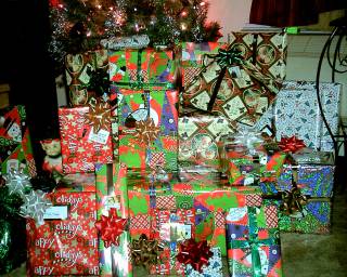 You see that one with the wrapping paper? No, not that one, the one with the bow. Yeah, that one. Well, that one wasn't yours, so send me .